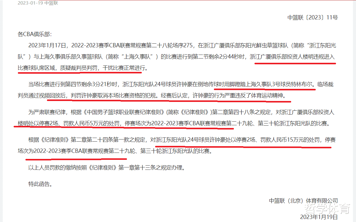 博鱼体育官方appCBA开出大罚单!许钟豪停赛2场+罚款15万楼明也遭到了重罚|